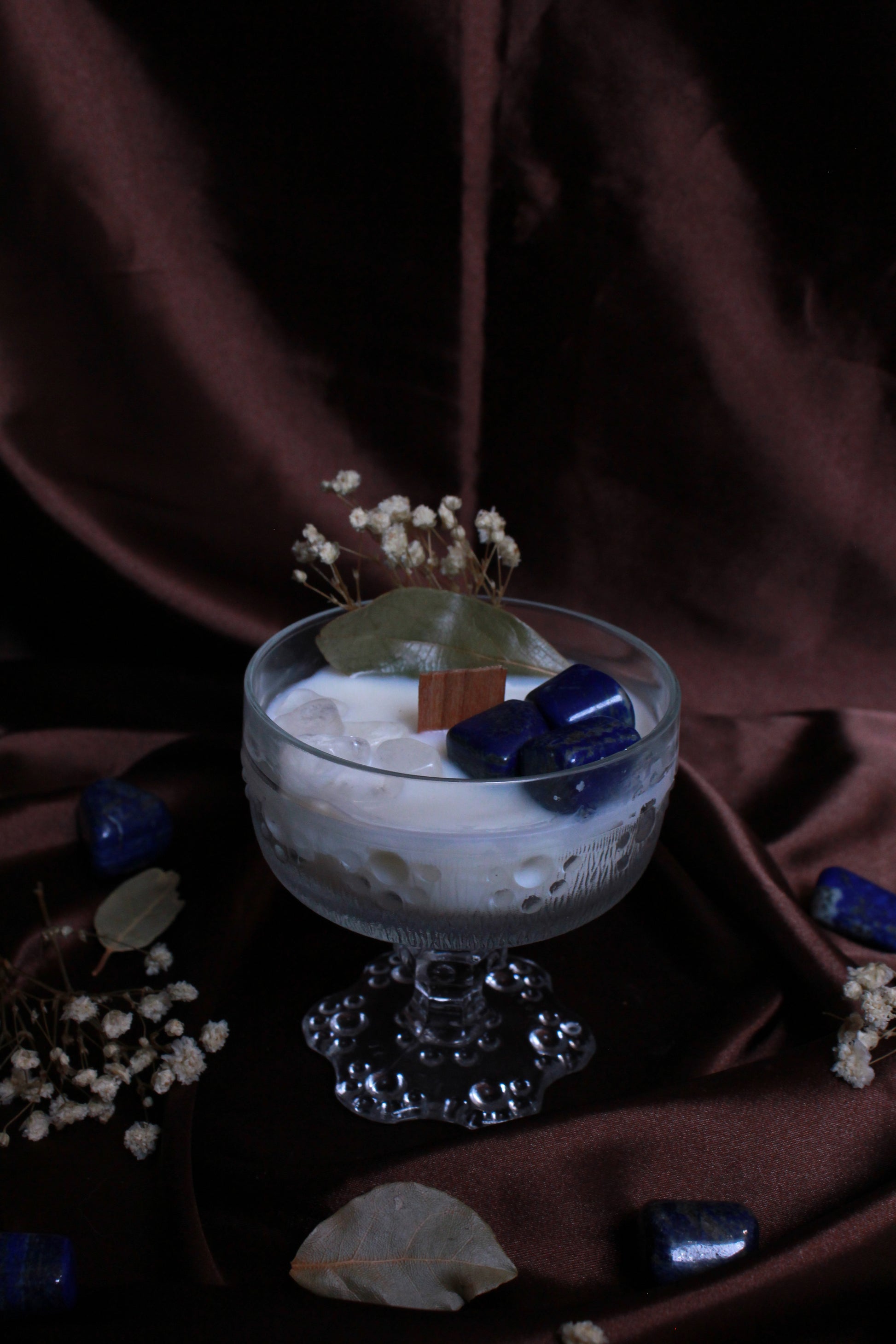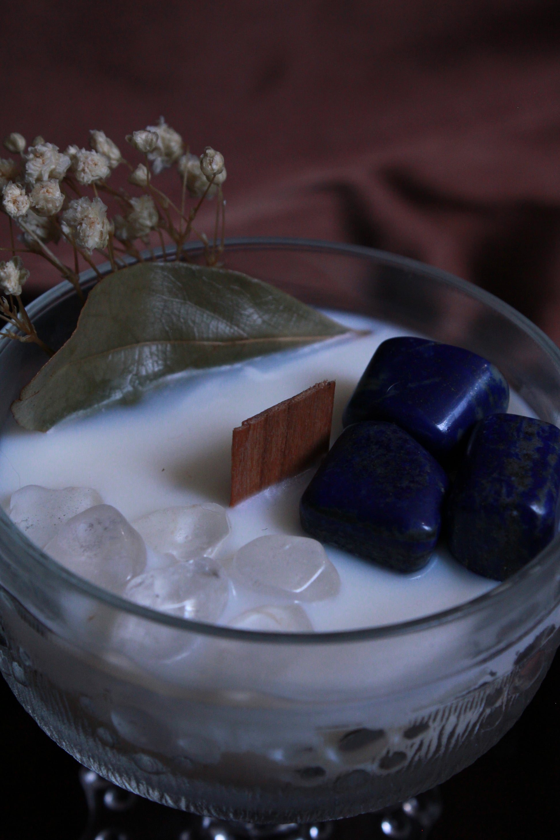 Coulée avec intention et ornée de pierres et de plantes sacrées, cette bougie rend hommage à Isis, déesse égyptienne de la magie, de la protection et de la maternité divine. Elle incarne la force, la guidance et l’harmonie intérieure.