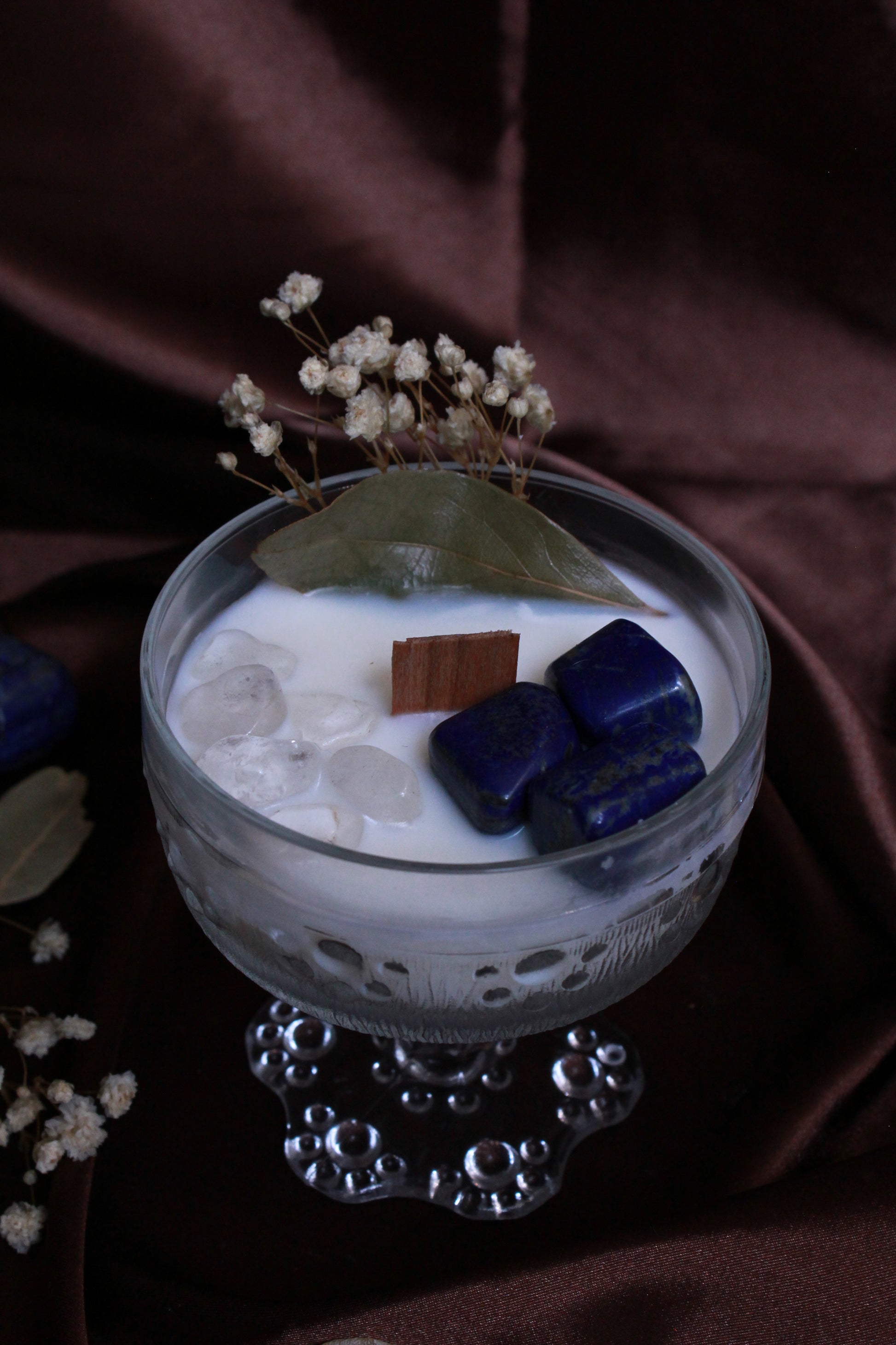 - Ornée de lapis-lazuli (sagesse, intuition) et cristal de roche (clarté, amplification)